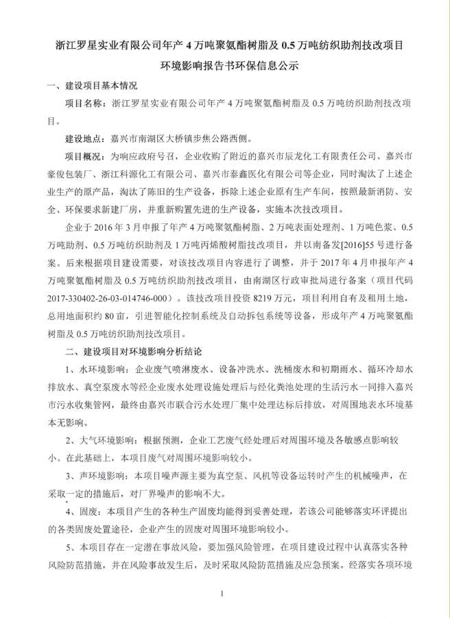 4萬噸樹脂及0.5萬噸助劑技改項目環保信息公示1